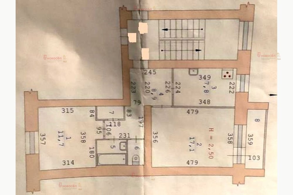 Объект № 138220. В продаже просторная двухкомнатная квартира с удачной планировкой: комнаты изолированы 17 и 12 кв.м, кухня 8 кв.м.