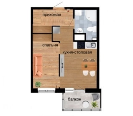 - ПОЛНОЦЕННАЯ 1-к. квартира 34,4м ЖК SUOMEN RANTA (YIT), см.ПЛАН