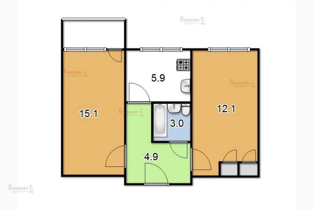 Екатеринбург, ул. Гурзуфская, 27 (Юго-Западный) - фото квартиры 2 февраля 2022 90 дн. 2 43 2/5 3 100 000