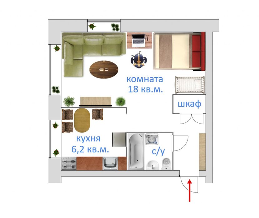 Общая площадь:31 м2