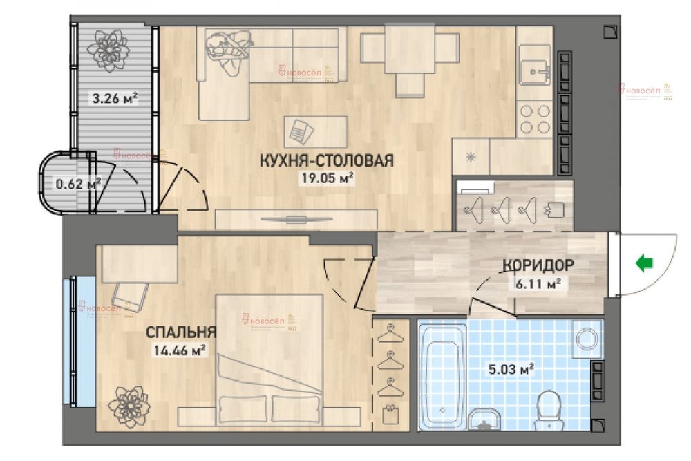 Екатеринбург, ул. Краснолесья, 54-4, ART Город-парк (Академический) - фото квартиры 14 февраля 2023 60 дн. 1 51.58 2/27 5 400 000