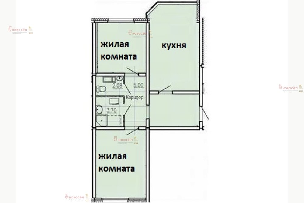 2-к квартира, Новгородцевой, 3