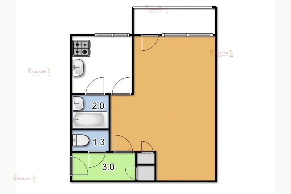 Общая площадь:35 м2
