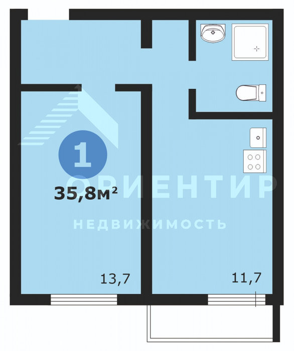 Общая площадь:35.8 м2