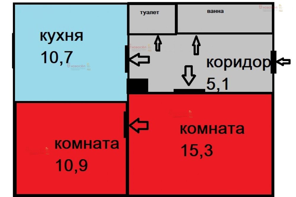 Общая площадь:43 м2
