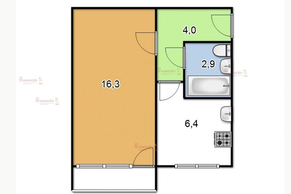 Общая площадь:30 м2