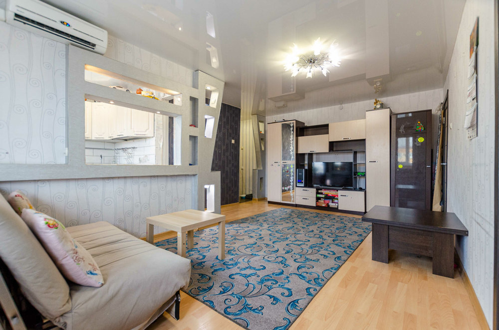 Произведен капитальный ремонт -установлены пластиковые стеклопакеты, пол-ламинат, потолок-натяжной.