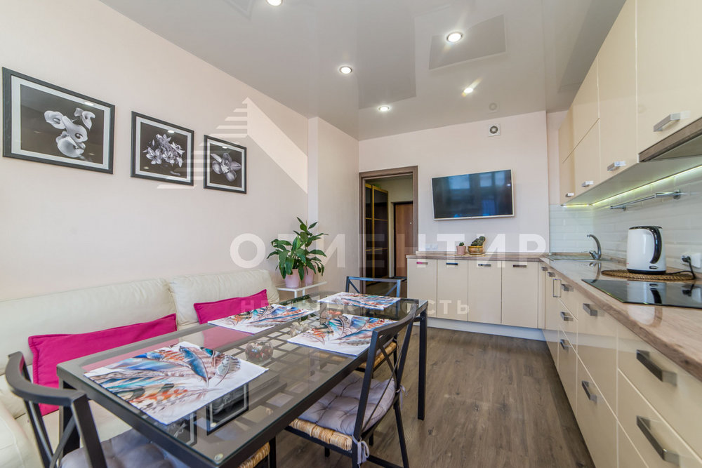 В квартире выполнен качественный, современный ремонт. Квартира имеет правильную эргономику для расстановки мебели. Гостиная прямоугольной формы 18 м.кв., кухня 14 м.кв., просторная ванная комната (5 м.кв.). На кухне остается в подарок кухонный гарнитур со встроенной техникой, в коридоре вместительный шкаф.