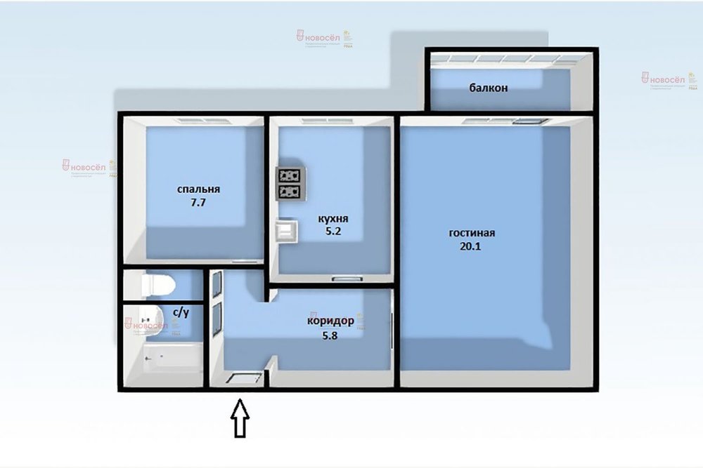 Общая площадь:43 м2