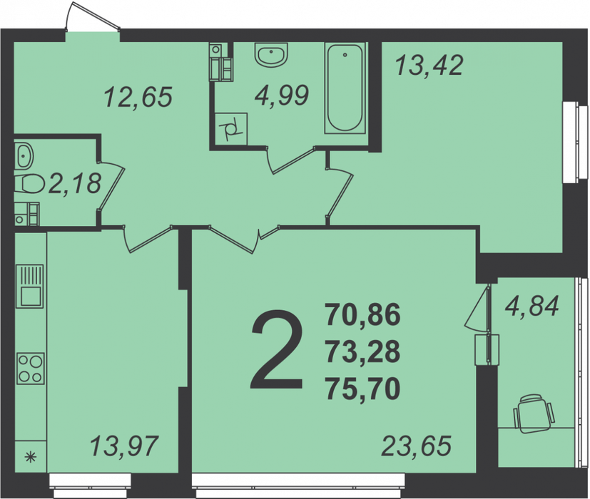 Общая площадь:70.2 м2