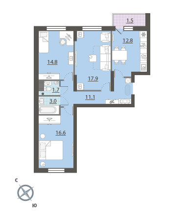 Екатеринбург, ул. Заводская, 92а (Юго-Западный) - фото квартиры 12 ноября 2025 90 дн. 2 63.6 14/25 9 500 000
