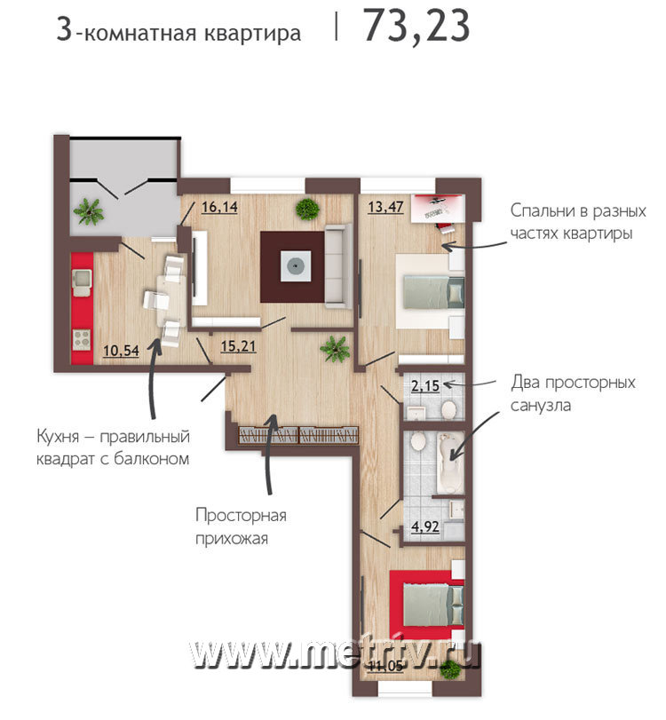 Две лоджии: Наслаждайтесь свежим воздухом и живописным видом с двух просторных лоджий – идеальное место для утреннего кофе или вечернего отдыха.