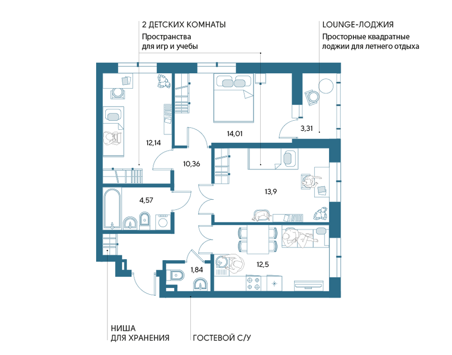 Площадь кухни:12.5 м2