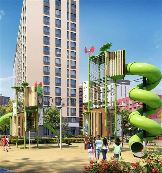 Дворы будут благоустроены, в них разместятся развивающие детские и современные спортивные площадки.