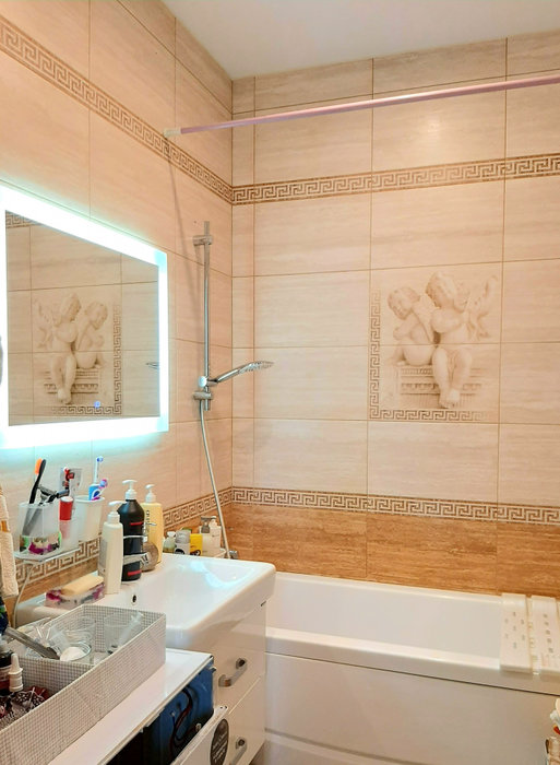 Квартира полностью с ремонтом: Ламинат, свежие обои, натяжные потолки, межкомнатные двери, ванная и туалет в кафеле, лоджия обшита деревом.