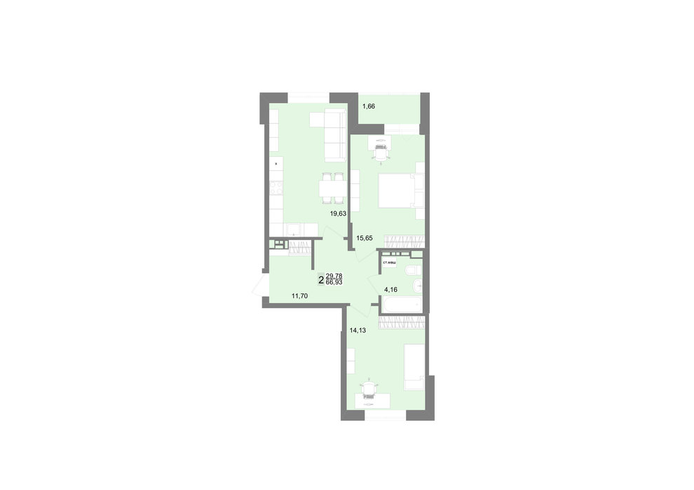 г. Верхняя Пышма, г. Верхняя Пышма, ул. Октябрьская, 5, Жилой комплекс «Юность», 4 очередь - фото квартиры 16 сентября 2020 90 дн. 1 42 7/20 2 786 550
