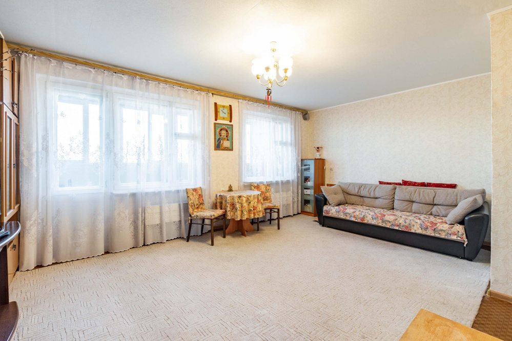 Продается трехкомнатная уютная, теплая квартира с просторной прихожей, улучшенной планировки в кирпичном доме. Две застекленные полулоджии на разные стороны, две вместительные кладовые. На полу во всей квартире линолеум, в коридоре, кухне и одной комнате натяжные потолки, в кухне и одной комнате стеклопакеты. Остается мебель: шкаф-купе, кровать полутороспальная, диван, угловой шкаф, кухонный гарнитур, комбинированная плита, газовые комфорки, электрическая духовка, вытяжка, посудомоечная машина BOSH. Дом расположен в зеленом микрорайоне, удален от проезжей части, двор оборудован детской площадкой, вокруг дома достаточно парковочных мест. Вся инфраструктура в шаговой доступности, магазины, аптеки, школы, детские сады, остановки транспорта (трамваи, автобусы, троллейбусы), 10 минут шагом до станции МЕТРО Чкаловская, Геологическая.