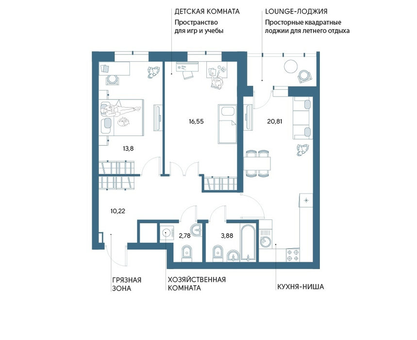 В квартире оборудован видеодомофон компании TRUE IP. По желанию возможна их интеграция с системой «Умный дом». Отделка «под чистовую»