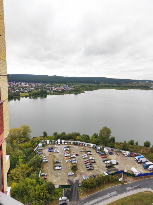 Из окон прекрасный вид : часть пруда, парк, весь микрорайон как на ладоне, можно наблюдать взлёт и посадку самолётов в аэропорту Кольцово, при этом шума самолётов не слышно.