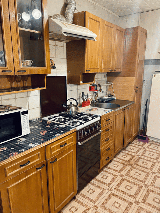 Квартира 60 кв. метров с изолированной планировкой и большой лоджией на кухню и гостиную. Большинство окон выходит во двор. Требуется ремонт, заехать и жить можно.