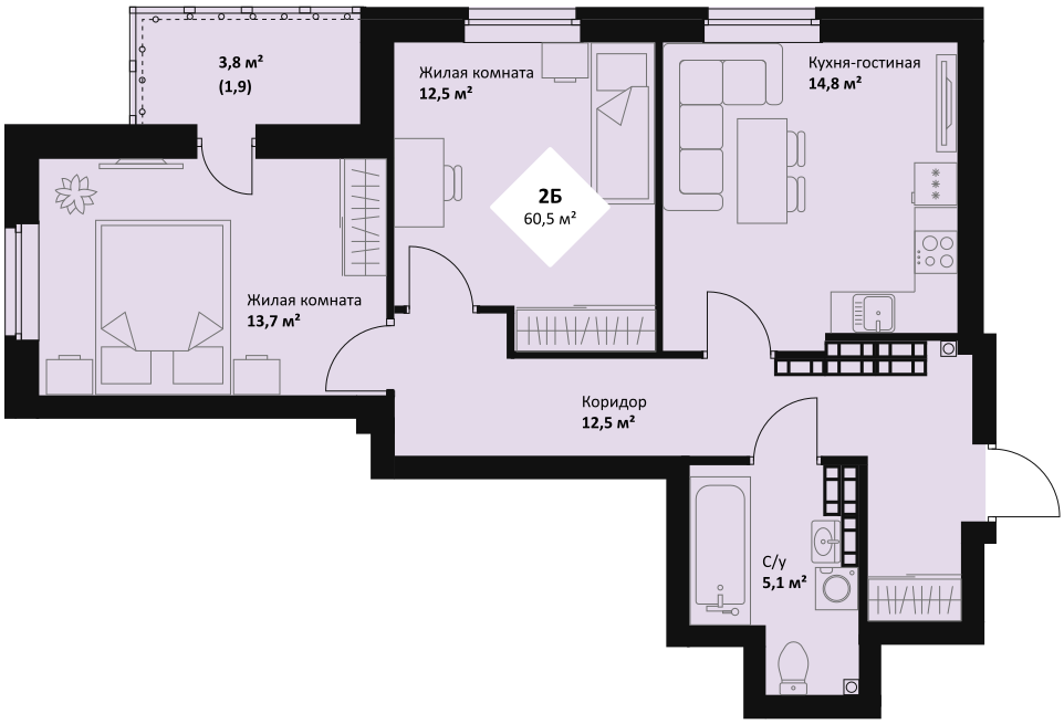 • 2-к квартира, Владимира Белоглазова, 2д, Жилой район «Изумрудный Бор» — 1 кв. 2026 г.
