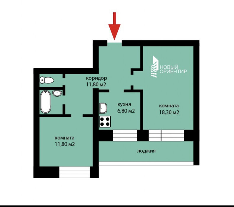 Общая площадь:52.5 м2