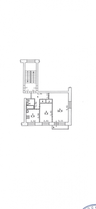-Две изолированные комнаты 10 и 17 м2, кухня 5,9 м2, коридор 5 м2. Требуется ремонт
