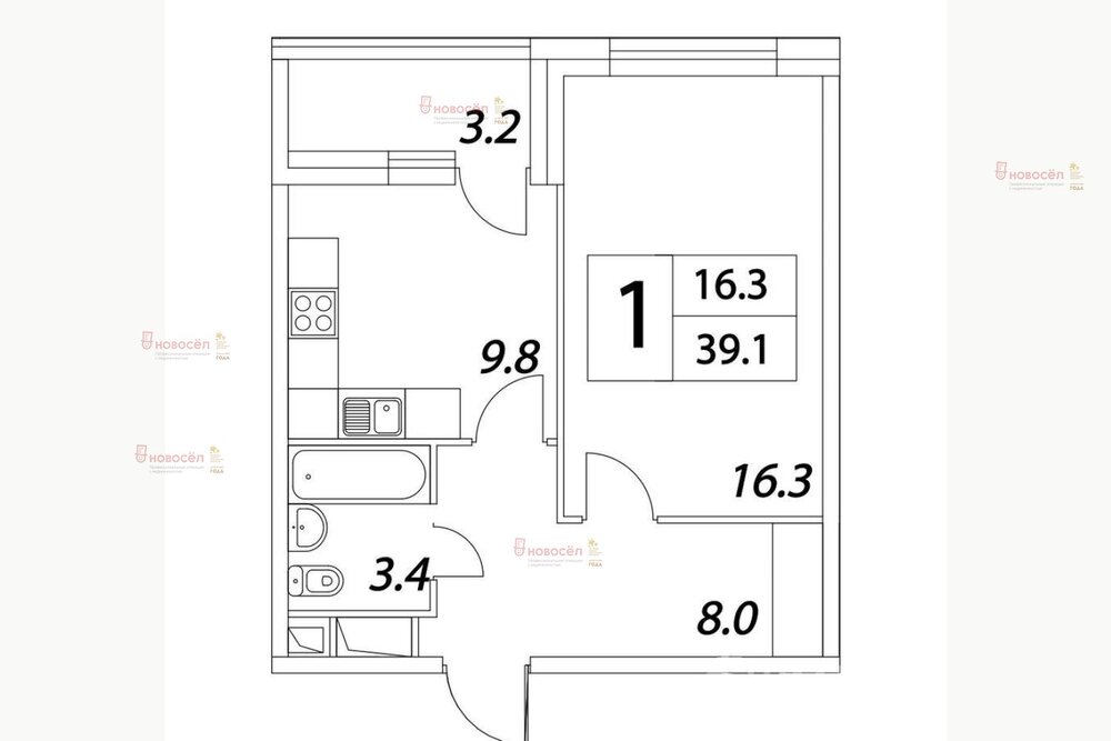 Общая площадь:39 м2