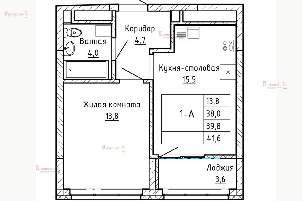Общая площадь:39.8 м2