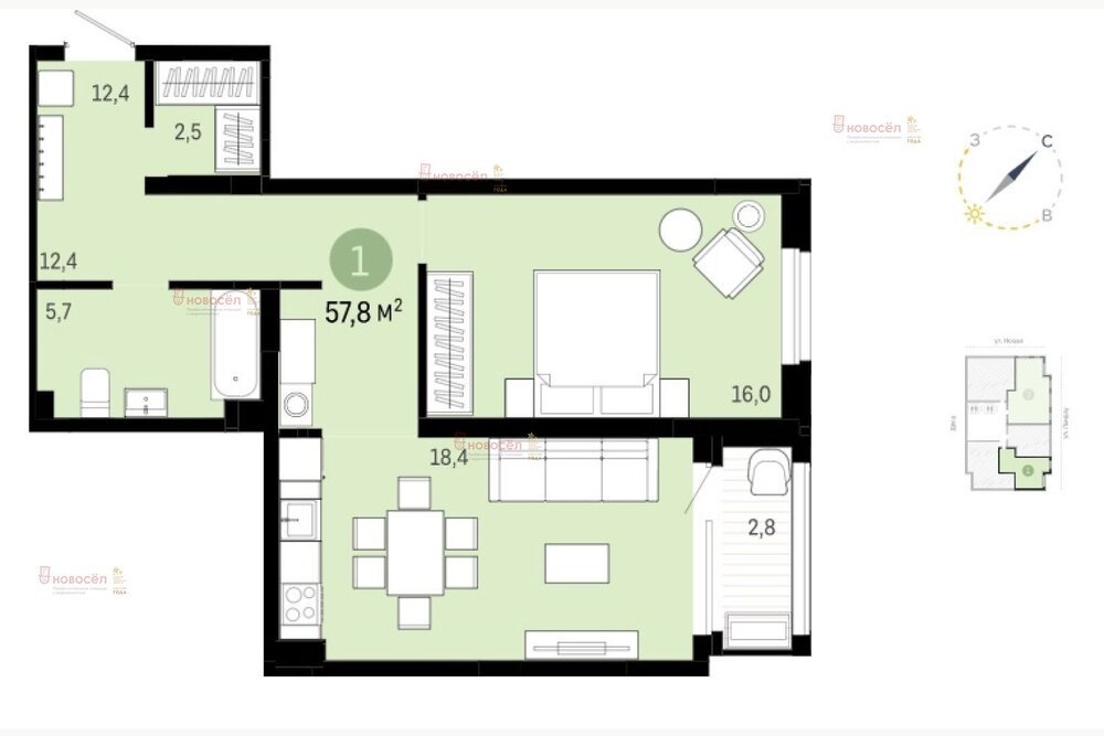 Общая площадь:58 м2