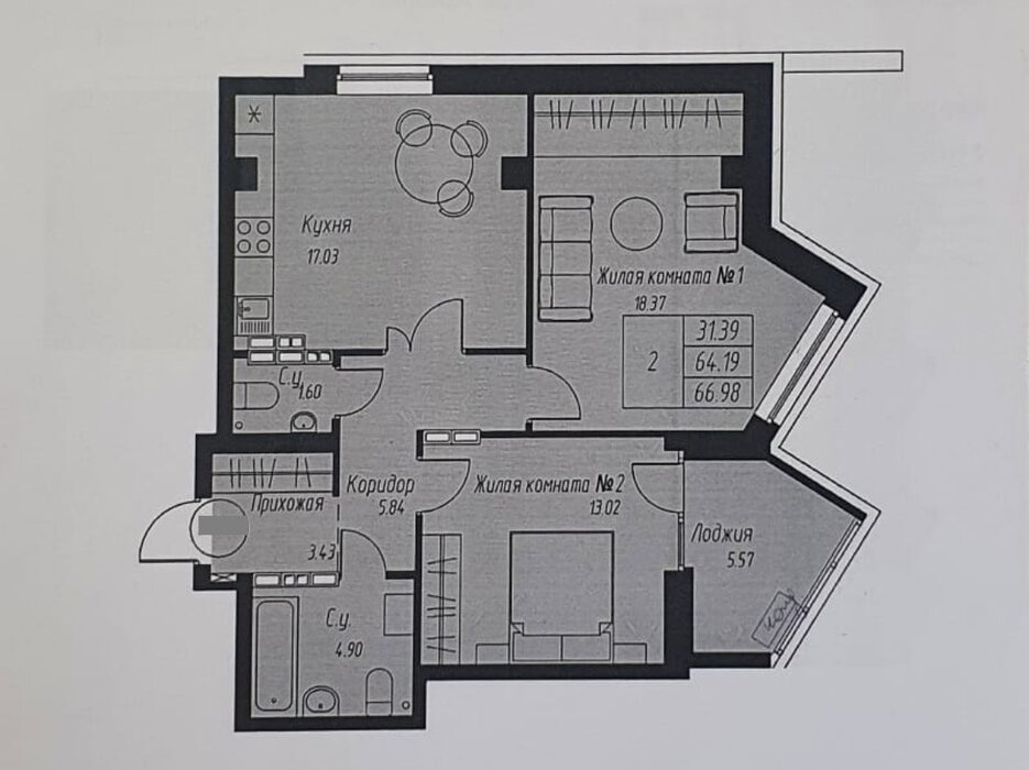 Общая площадь:64.19 м2