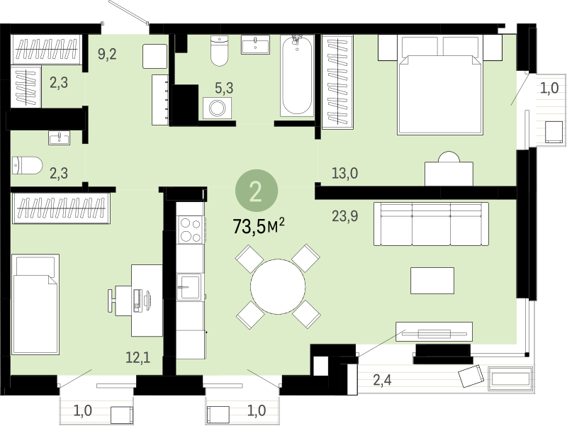 Квартира с крутым зонированием - кухня гостиная разделяет две комнаты, детскую и мастер-спальню. Идеальная звукоизоляция с межквартирными стенами из кирпича.Панорамные окна в пол дают максимум света в помещении и выходят в сторону пешеходного бульвара без машин с крутым благоустройством.Спустившись на лифте на -1 этаж вы попадаете в свою кладовую, где можно хранить межсезонные вещи, освобождая жилое пространство.Рядом будет детсад, школа, ТЦ, остановка трамвая, что придаст стоимости этой локации.По улице Амундсена будет выезд на ЕКАД. ID объекта в нашей базе: 8262