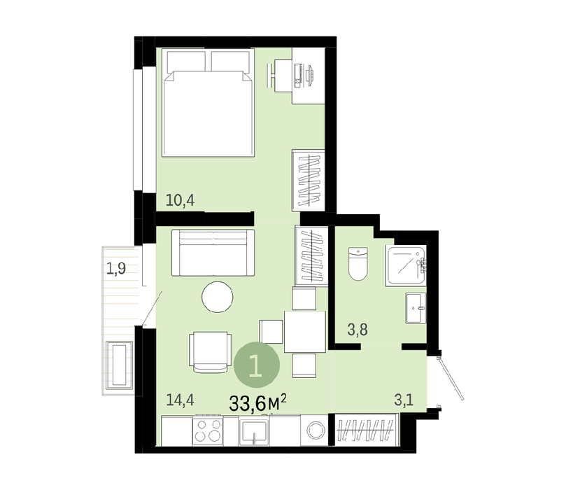 В продаже однокомнатная квартира с кухней-гостиной и холодной лоджией в квартале "Брусника в Академическом". Передача ключей до 31 декабря 2023 г.