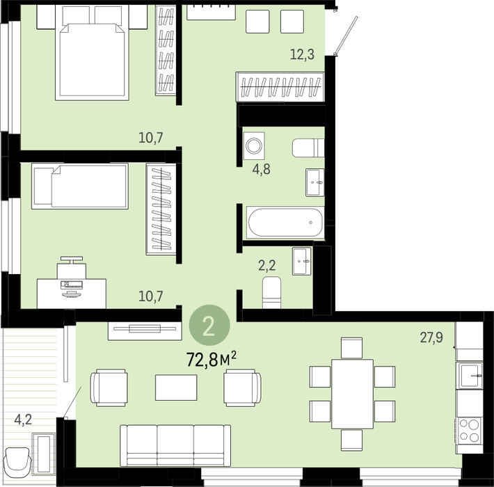 Двухкомнатная квартира с кухней-гостиной и холодной лоджией в квартале "Брусника в Академическом". Передача ключей до 31 декабря 2023. Дом 1, архитектурную концепцию которого мы разрабатываем с европейским бюро, имеет переменную высотность от 7 до 15 этажей. В нем 318 квартир (в том числе с террасами на крыше, отдельным входом и панорамным остеклением). Фасады здания отделаны светлой штукатуркой с контрастными вставками. В основе проекта — популярный за рубежом принцип mixed-use, предполагающий совмещение в пределах одной локации нескольких функций: жилой, коммерческой и развлекательной. Поэтому первые этажи занимает зона ритейла с продуктовым супермаркетом и другими полезными сервисами.