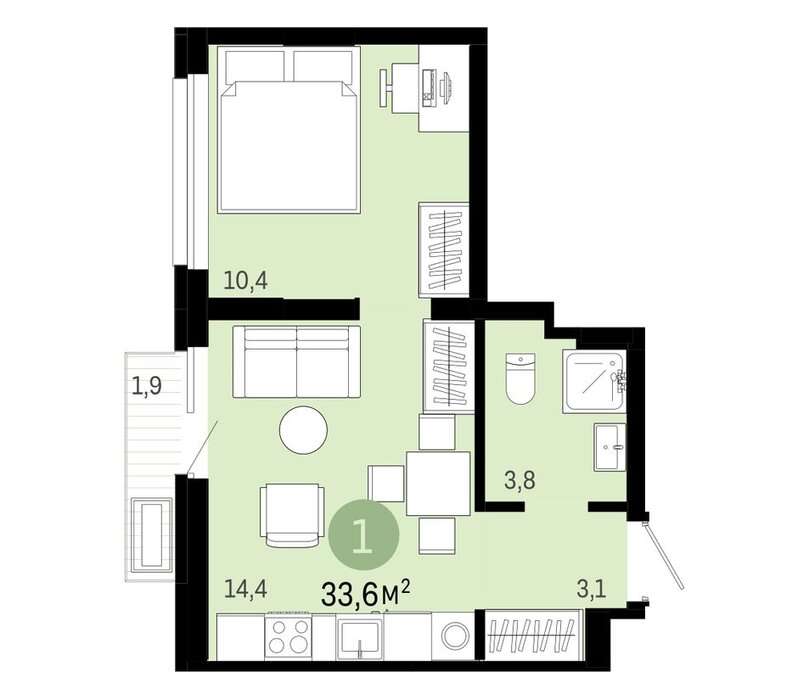 В продаже однокомнатная квартира с кухней-гостиной и холодной лоджией в квартале "Брусника в Академическом". Передача ключей до 31 декабря 2023 г.