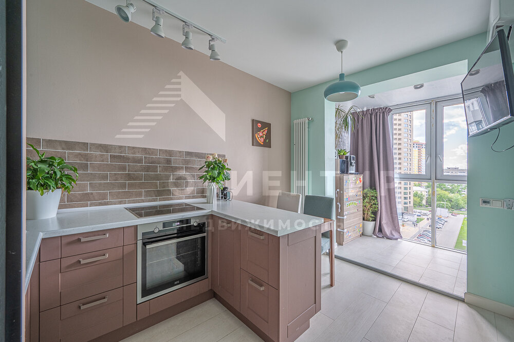 В квартире выполнен качественный ремонт, установлен шкаф-купе и кондиционер. На кухне установлен компактный и удобный гарнитур со встроенной бытовой техникой.
