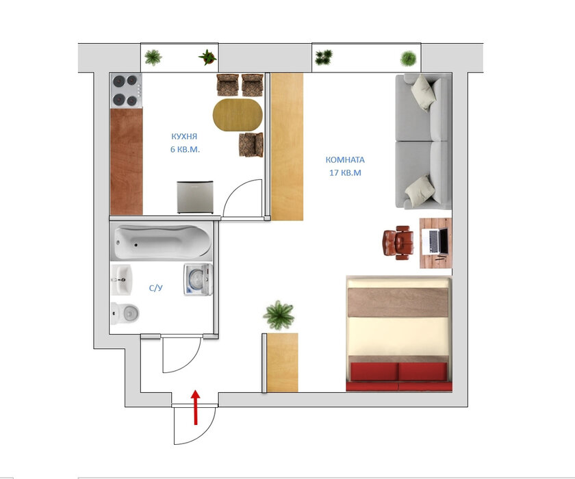 Санузел совмещённый. В подарок покупателю остается: кухонный гарнитур.