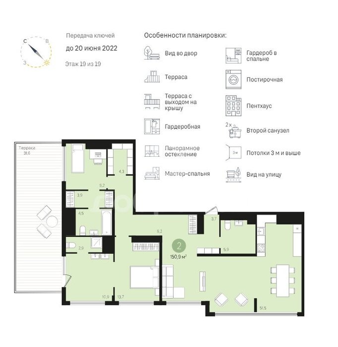 Преимущества данной квартиры : есть постирочная, панорамное остекление, пентхаус, высокие потолки - 3 метра и выше.