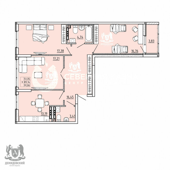 Эргономичная планировка: просторные кухня и комнаты, большая ванная, удобная прихожая со шкафом-купе. Идеально подойдёт для семьи с детьми.