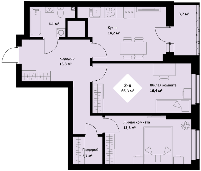 Общая площадь:66.3 м2
