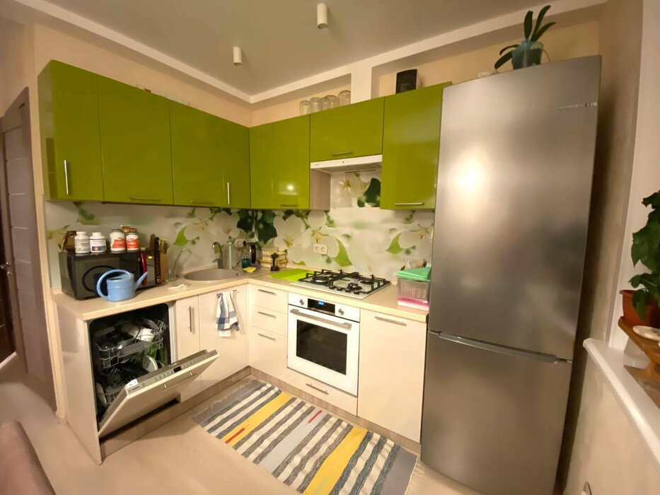 В стоимость квартиры входит кухонный гарнитур с новой посудомоечной машиной, варочной поверхностью и духовкой фирмы BOSH, большой вместительный шкаф-купе в коридоре.