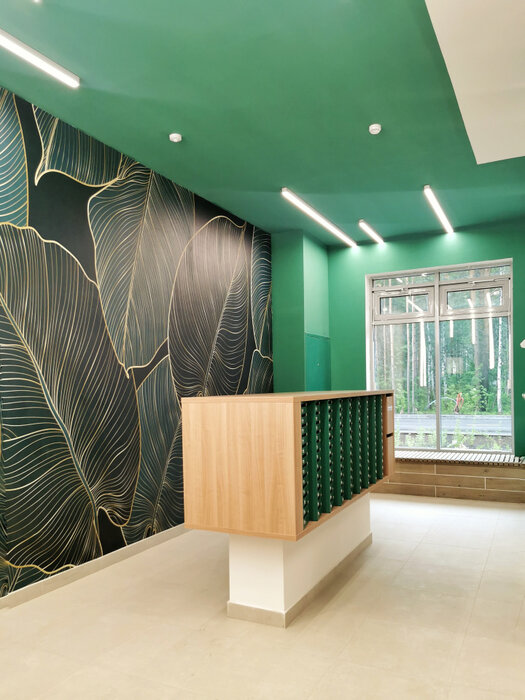 Холл имеет три выхода: в паркинг, на улицу и во двор. Оснащен удобной мебелью и гостевым санузлом. Вход в подъезд без ступеней, на уровне земли.