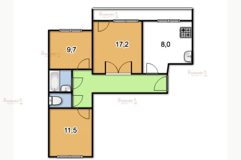 Площадь кухни:9 м2