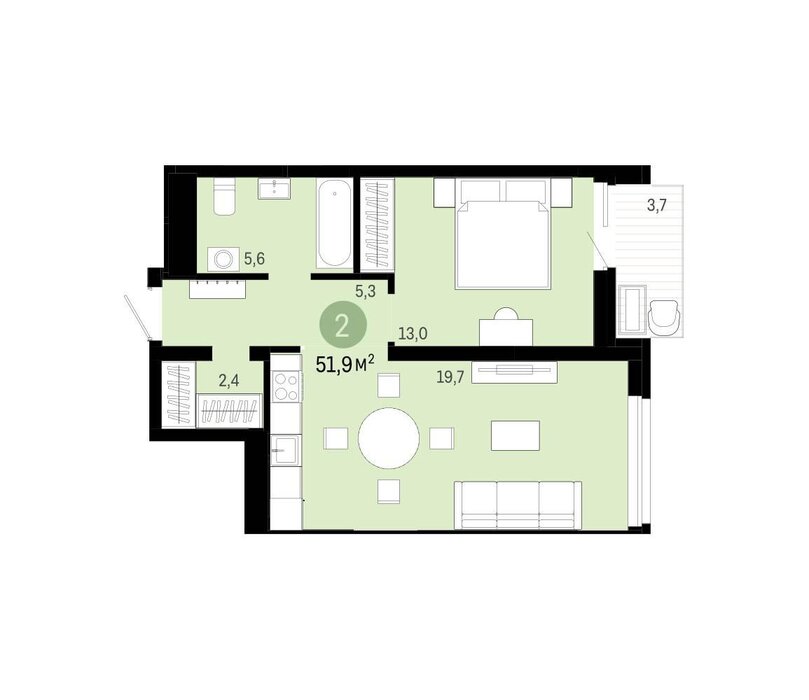 Однокомнатная квартира с кухней-гостиной и холодной лоджией.