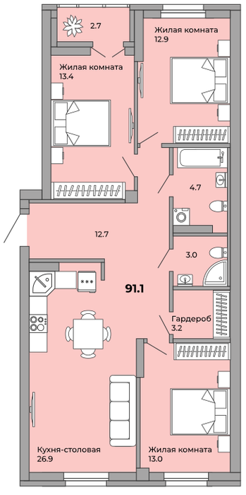 Екатеринбург, ул. Донбасская, 21 - фото квартиры 18 ноября 2025 90 дн. 1 27.3 19/25 4 668 300