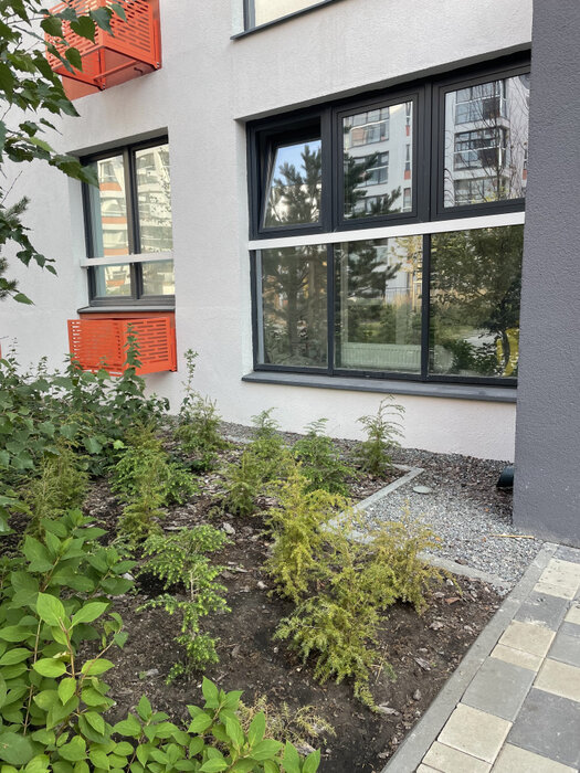 Закрытый двор с круглосуточным видеонаблюдением позволяет детям безопасно играть и гулять на внутренней территории дома. На территории большое количество деревьев, растений, очень уютно и красиво.