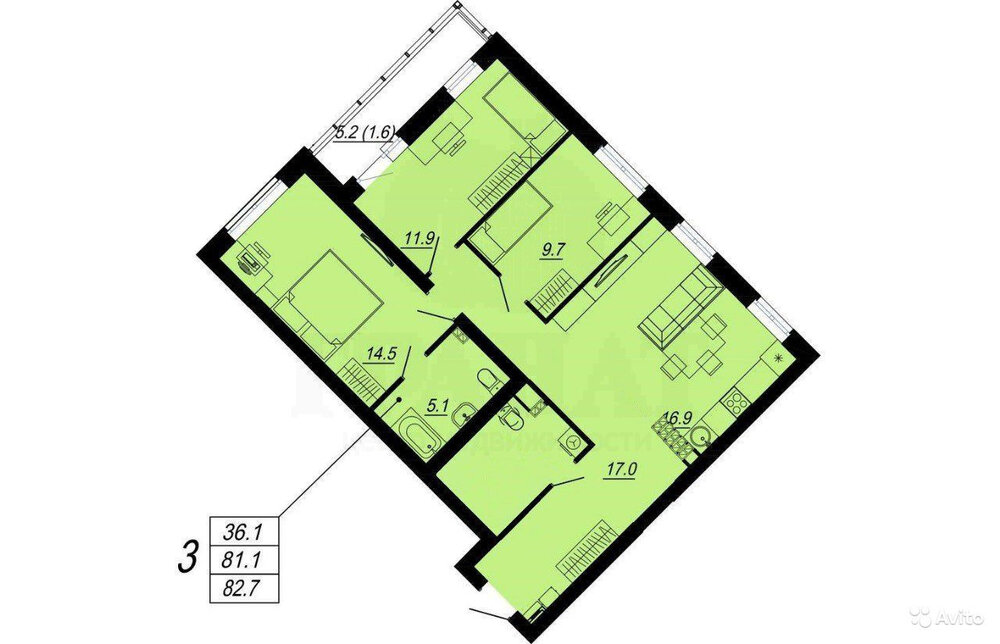 Количество комнат:3