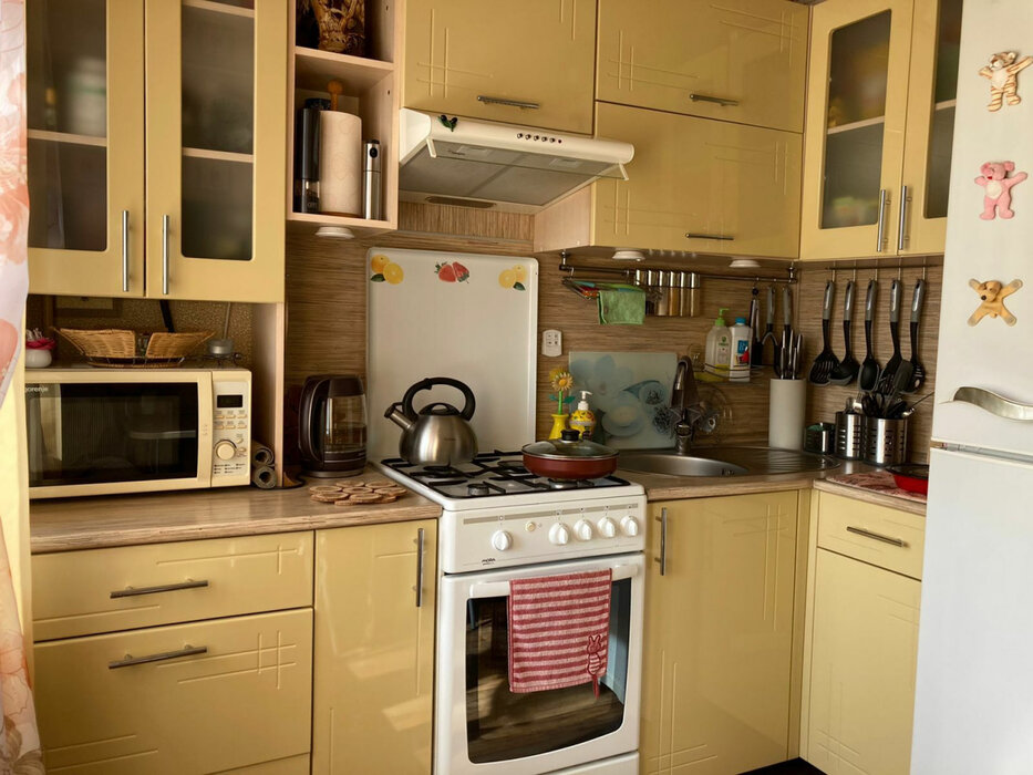 СРОЧНАЯ ПРОДАЖА В подарок остаются: кухонный гарнитур, вытяжка, плита, кухонный стол, все мебель в ванной комнате. Остальная мебель обсуждается с покупателем. Счётчики на воду (только заменили) и двухтарифный счётчик на электричество. Есть большая кладовая из которой можно сделать прекрасную гардеробную. Во всей квартире сделан хороший и качественный ремонт, натяжные потолки. Качественные пластиковые окна и входная дверь Argus. Застеклен и полностью обшит балкон, как снаружи так и изнутри. В доме проведён капитальный ремонт, проведена замена всех сантехнических, канализационных и отопительных труб. Прекрасный вид из окна на лес и речку. В доме на первом этаже большой магазин Кировский. Во дворе детский садик, в пяти минутах школа 52, остановка общественного транспорта прямо напротив дома. Рядом много магазинов, аптек, парикмахерских, теннисная академия со множеством секций и кружков.