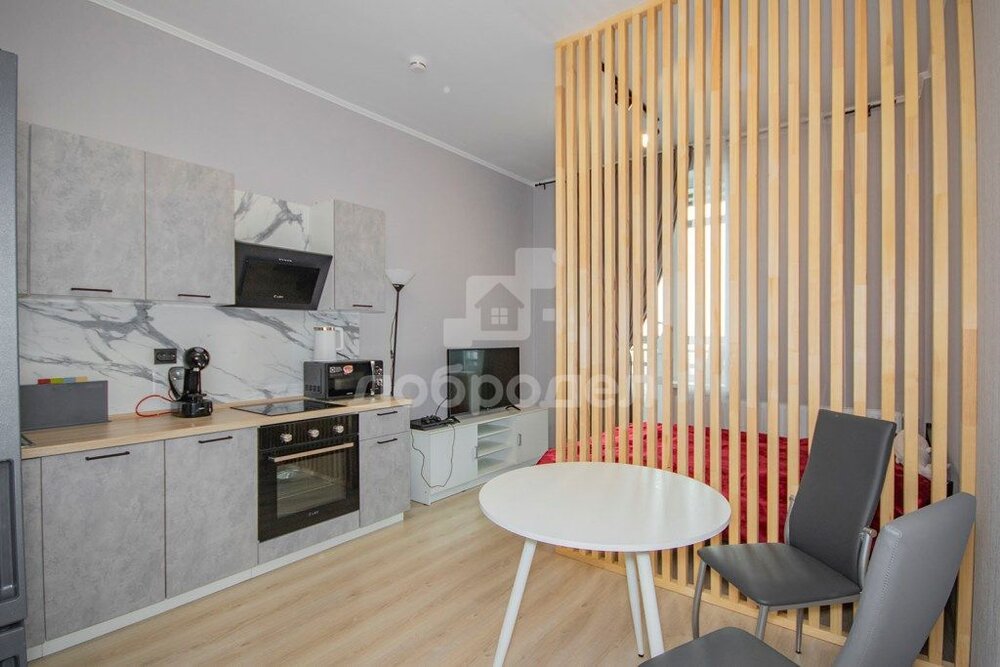 Сделан свежий стильный ремонт. На кухне установлен кухонный гарнитур со встроенной бытовой техникой. Лоджия остеклена.