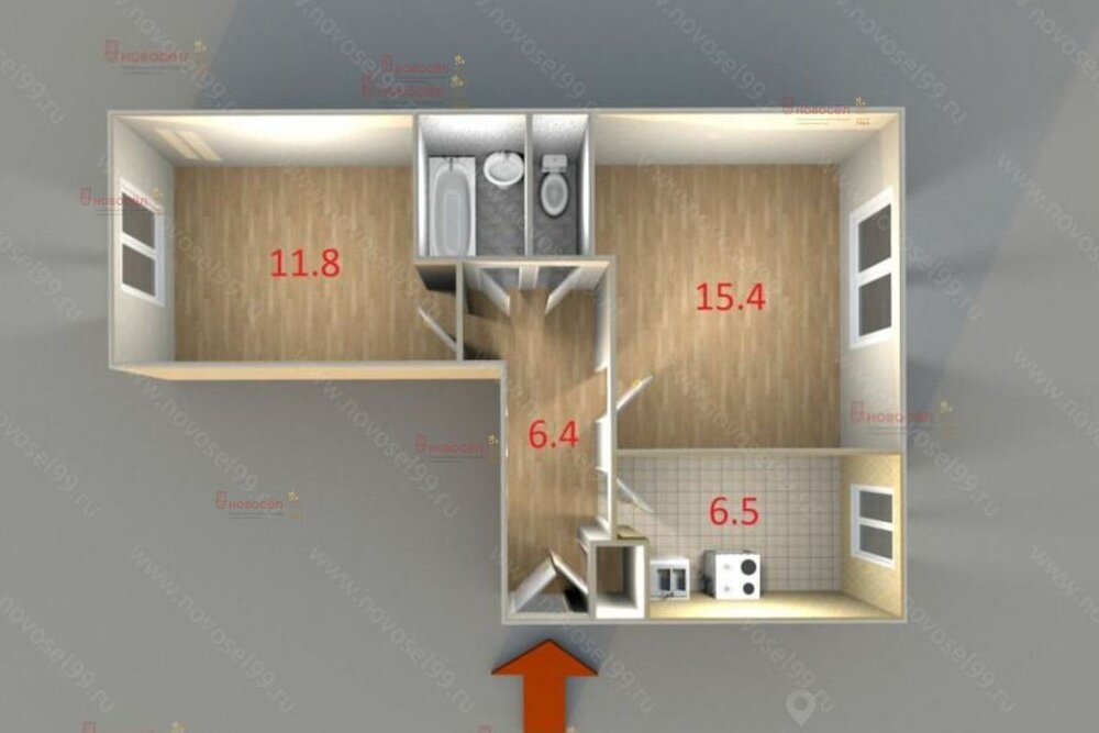 Общая площадь:43 м2